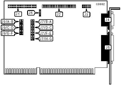 | | Parallel port interrupt select | J9/C | pins 2 & 3 |