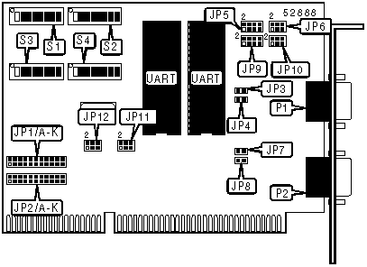 | | Serial port 2 interrupt shared | JP12 | Pins 3 & 5, 4 |