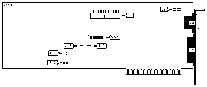 | Floppy-drive port | J1 | Serial port 1 - | J3 |