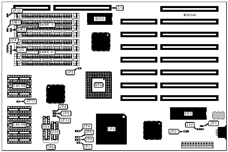 | | CMOS memory clear | JP2 | pins 1 & 2 |