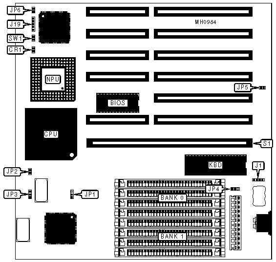 | | CMOS memory clear | JP4 | pins 2 & 3 |