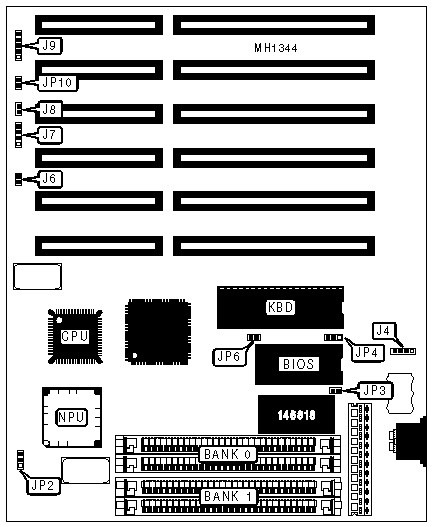 | | Monitor type select monochrome | JP4 | pins 2 & 3 |