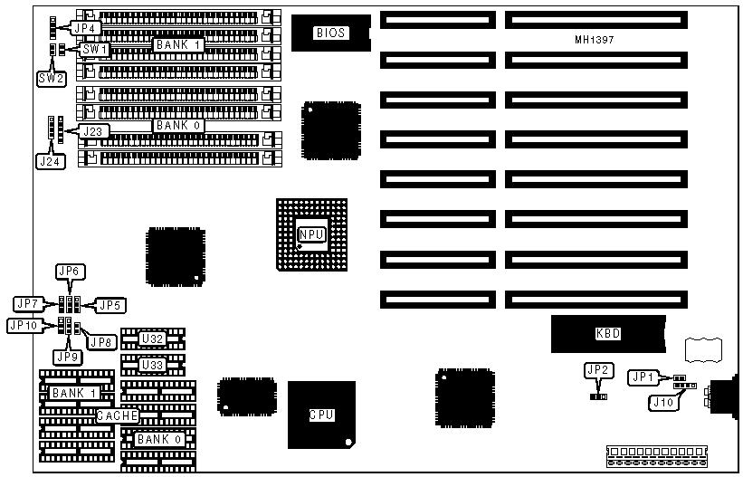 | | CMOS memory clear | JP2 | pins 1 & 2 |