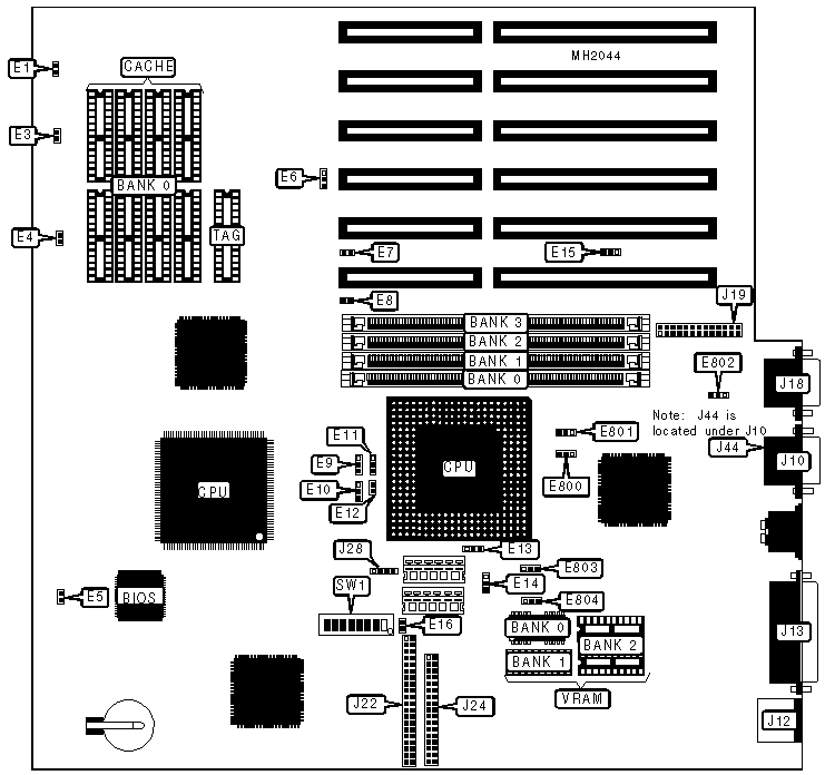 | Note: Some later versions have omitted jumper E6. |