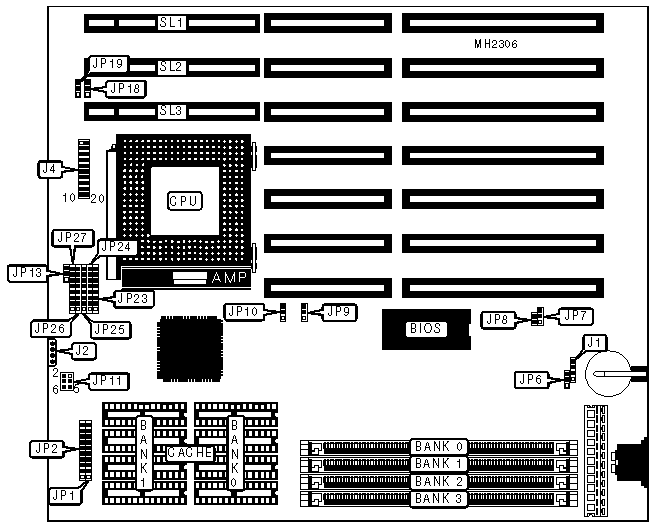 | Power LED & | J4 (pins | 32-bit VESA | SL1 - SL3 |