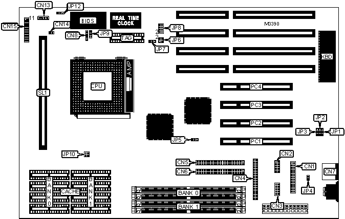 | | CMOS memory clear | JP12 | Pins 2 & 3 |