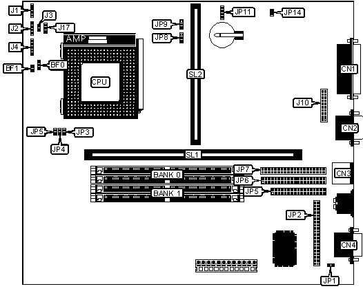 | PS/2 mouse port | CN3 | Video feature | JP2 |