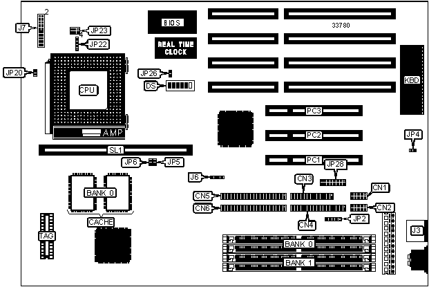 | Floppy drive | CN4 | Reset switch | J7 pins 18 & |
