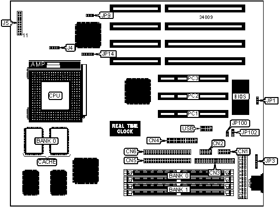 | Floppy drive | CN3 | PS/2 mouse | JP3 |