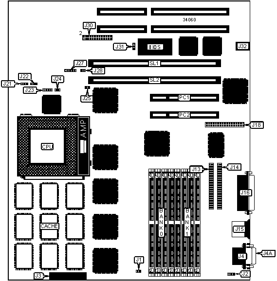 | Note: Board can be installed with either 1MB or 2MB of |