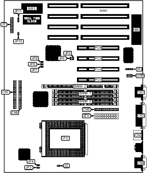 | Note: Board accepts EDO memory. Banks are interchangeable. |