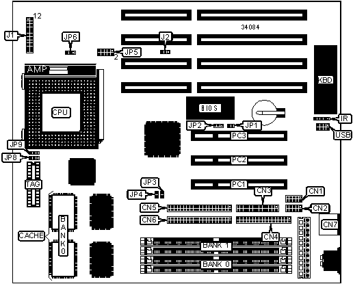 | Note: Board accepts EDO memory. Banks are interchangeable. |