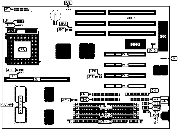 | Note: Board accepts EDO memory. Banks are interchangeable. |