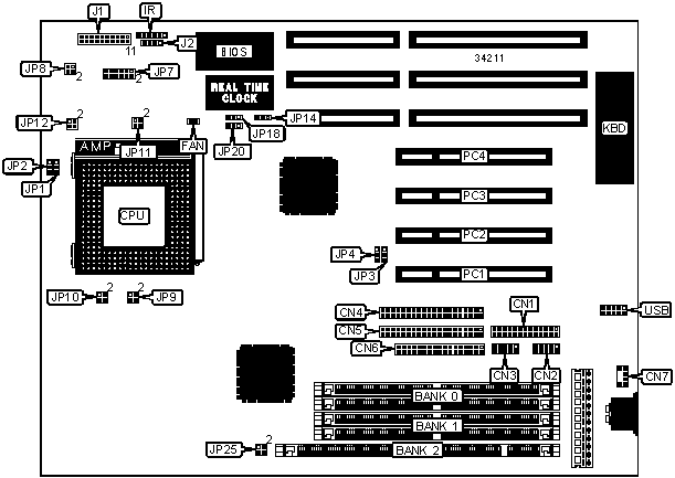 | | CMOS memory clear | JP14 | Pins 2 & 3 |
