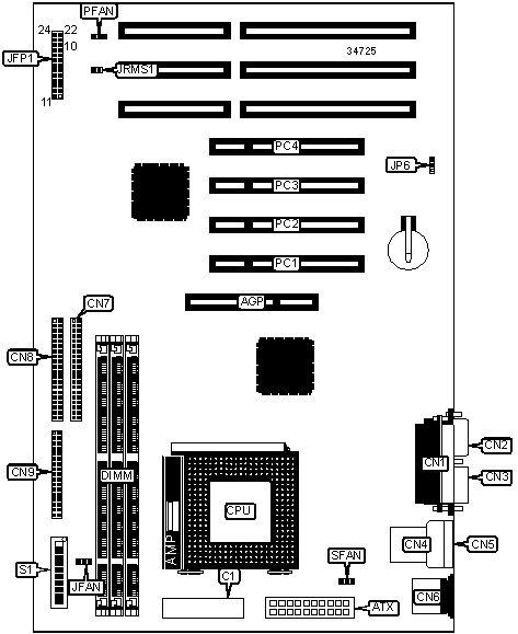 | PS/2 mouse port | CN6 | 32-bit PCI | PC1 – PC4 |