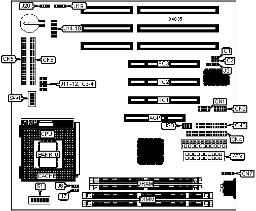 | | CMOS memory clear | J12 | Pins 2 & 3 |