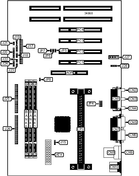 | Game/MIDI port | CN1 | IDE interface | J19 |