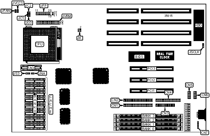 | Floppy drive | CN3 | Turbo switch | JFP pins |