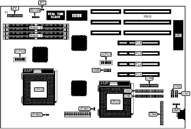 | Floppy drive | CN3 | IDE interface | JFP pins |