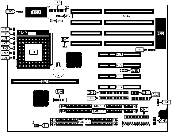 | Note: Board accepts EDO memory. Banks 0 & 1 are |