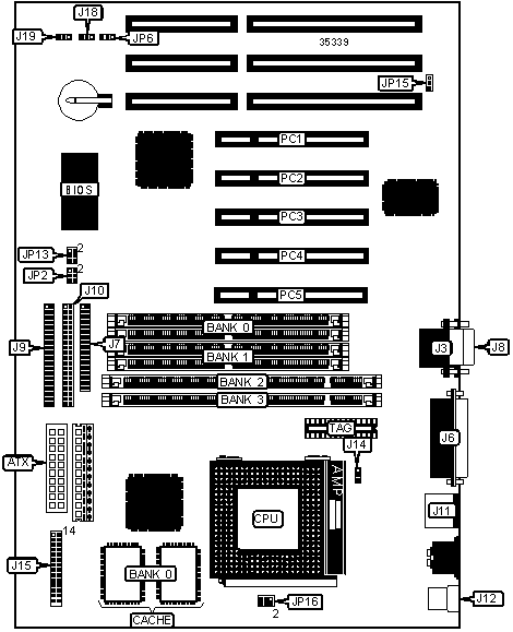 | CPU fan power | J14 | 32-bit PCI slots | PC1 - PC5 |