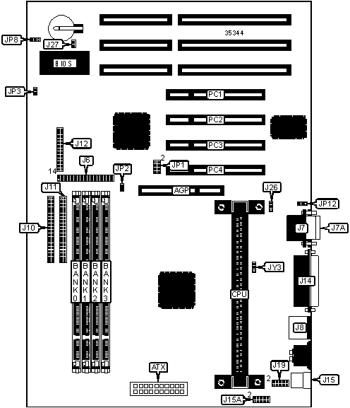 | | CMOS memory clear | JP8 | Pins 2 & 3 |