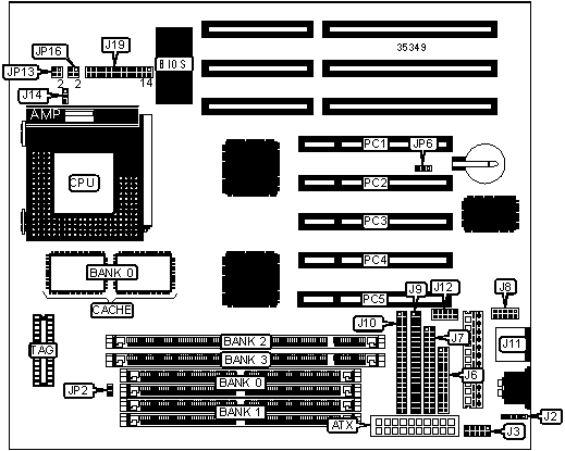 | | CMOS memory clear | JP6 | Pins 2 & 3 |
