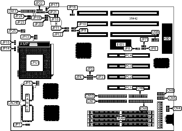 | | CMOS memory clear | JP12 | Pins 2 & 3 |