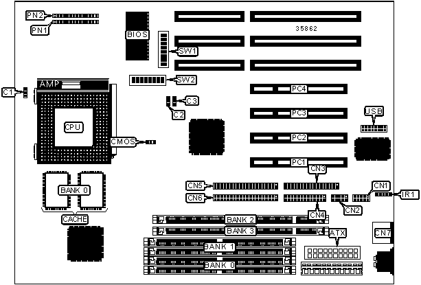 | Floppy drive | CN3 | Reset switch | PN2/pins 1 |