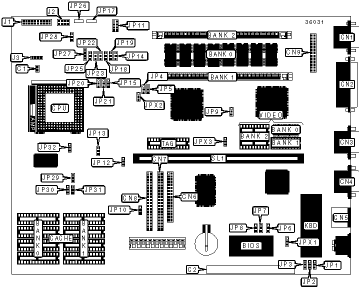 | » | BIOS type select EPROM | JPX1 | Pins 2 & 3 |
