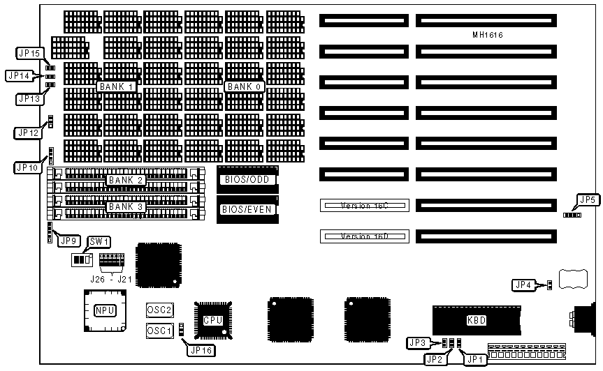 | Power LED & keylock | JP9 | Turbo switch | JP14 |
