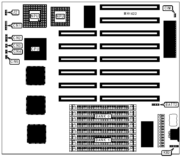 | | CMOS memory clear | BATT2 | pins 1 & 2 |