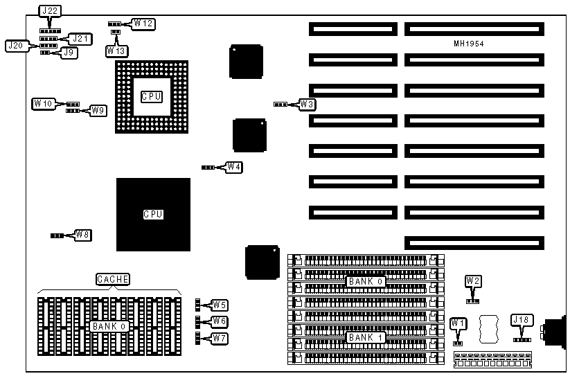 | | CMOS memory clear | W2 | pins 2 & 3 |