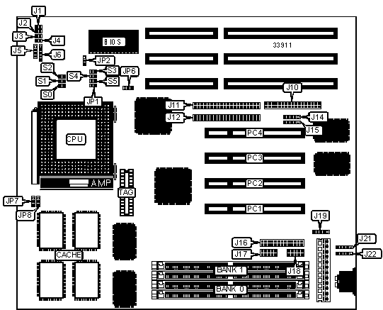 | | CMOS memory clear | JP6 | Pins 2 & 3 |