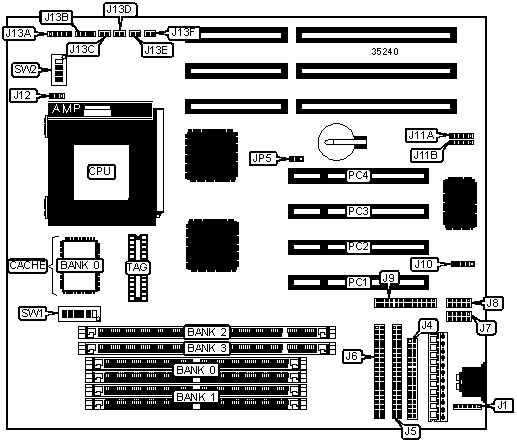 | | CMOS memory clear | JP5 | Pins 2 & 3 |
