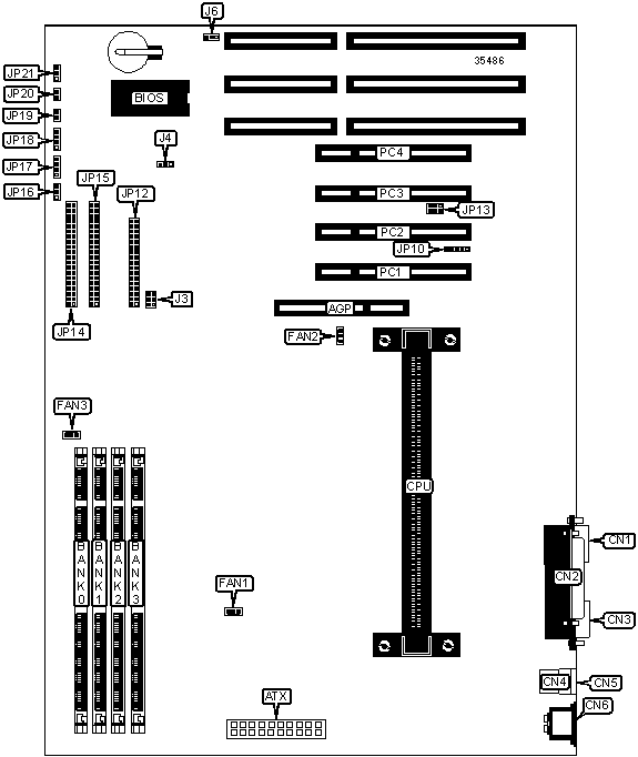 | | CMOS memory clear | J4 | Pins 2 & 3 |