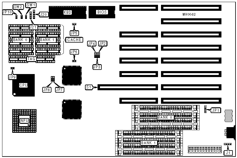 | | CMOS memory clear | JP1 | pins 1 & 2 |