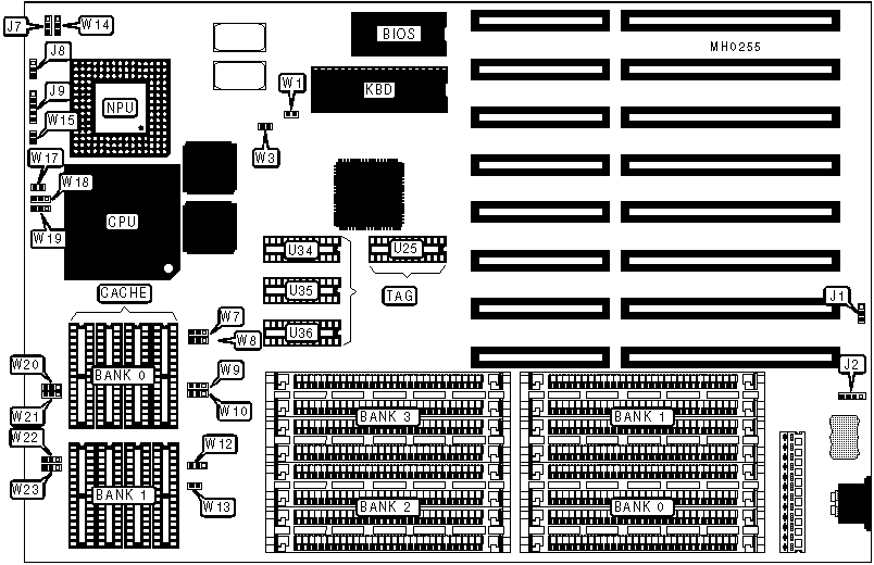 | Note:When a 20MHz 80486SX CPU is used, W3 is closed and a |