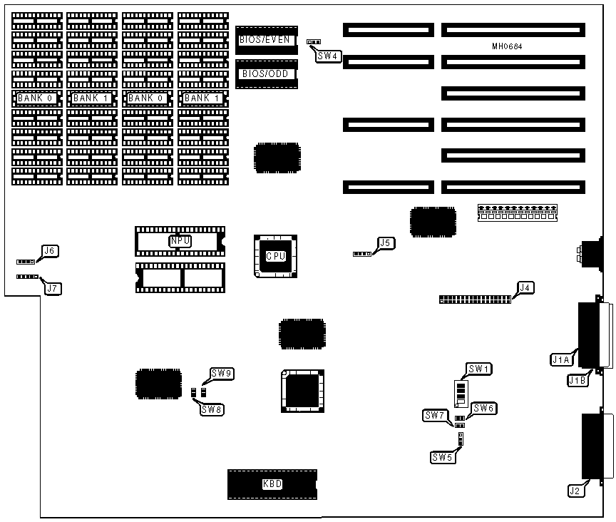 | | BIOS type select 27128 | SW4 | pins 1 & |