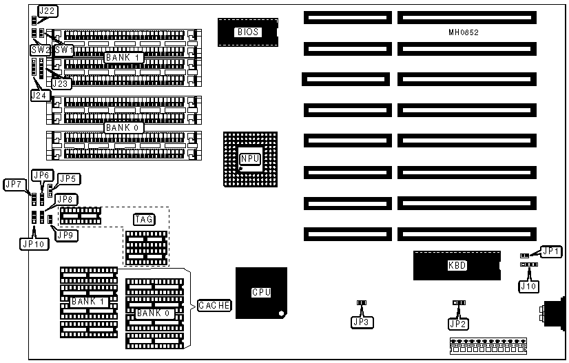 | | CMOS memory clear | JP2 | pins 1 & 2 |