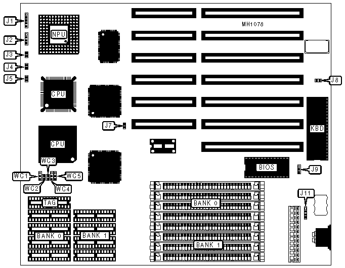 | | CMOS memory clear | J9 | pins 1 & 2 |