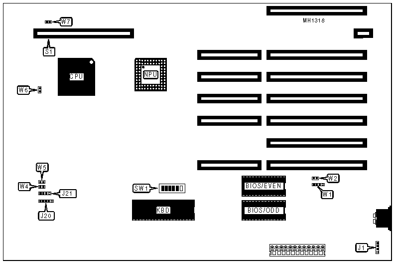 | | BIOS type select 27128 | W1 | pins 1 & 2 |