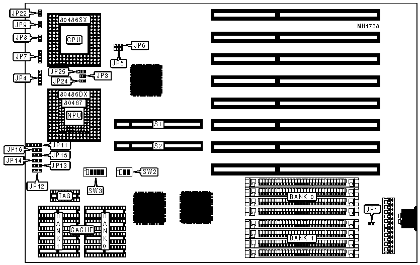 | Reset switch | JP8 | 32-bit VESA Local | S1 & S2 |