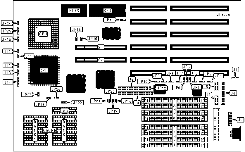 | IDE interface | J9 | 32-bit VESA Local | S1 & S2 |