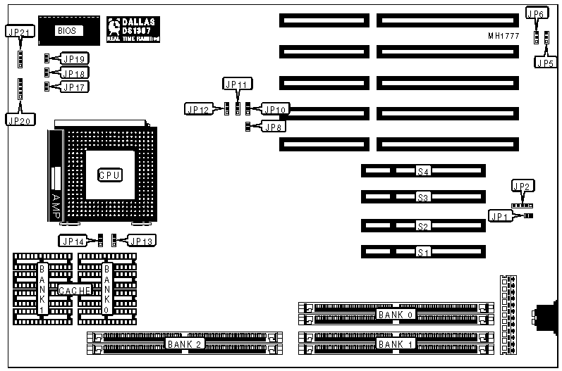 | Reset switch | JP19 | 32-bit PCI bus slots | S1 - S4 |