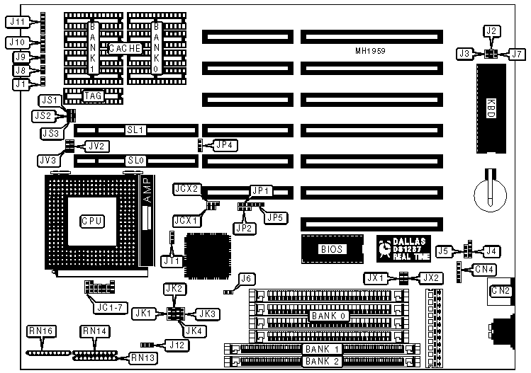 | Reset switch | J9 | 32-bit VESA Local | SL0 & |