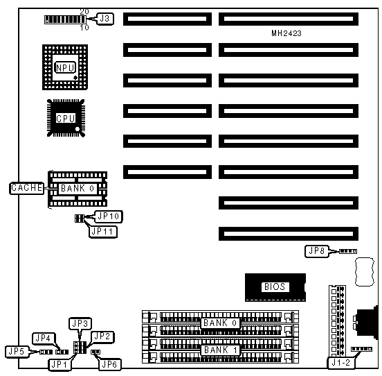 | | CMOS memory clear | JP8 | pins 1 & 2 |