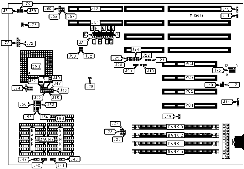 | | CMOS memory clear | J12 | pins 2 & 3 |