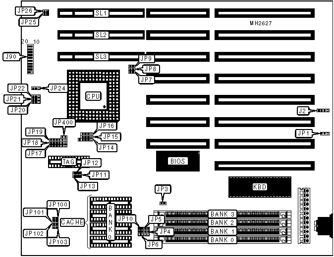 | Turbo switch | J90 pins | 32-bit VESA | SL1 - SL3 |