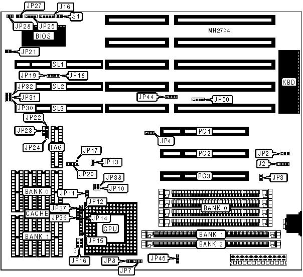 | Bank 0 = 72 pin SIMM | pins 1 & 2 closed |